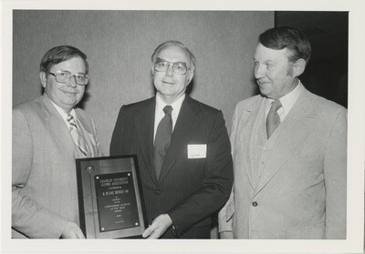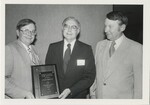 This photograph features two men and Outstanding Alumni Award Winner, K. Duane Denney posing with the award.