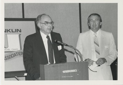 This photograph features K. Duane Denney, class of '48, accepting the 1980 Outstanding Alumni Award.