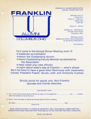 This photo features the annual dinner invitation for alumni on June 12, 1976.