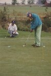 This photograph features an alumni putting, while another alumnus waits for his turn to hit his golf ball at the 1993 Alumni Golf Outing.